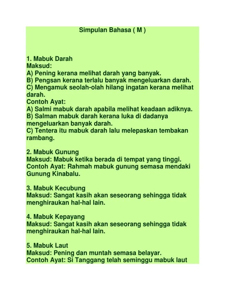 Senarai peribahasa melayu dan maksud; Rumah tangga 家庭 / 结婚 s 1. A gelap hati b rambang mata c mata durian d gelap fikiran. Contoh lain kelompok simpulan bahasa ialah besar kepala (degil), . Panjang tangan 喜 欢 偷 东 西 4. Cikgu suzana binti yusob, d20102042257, kump.